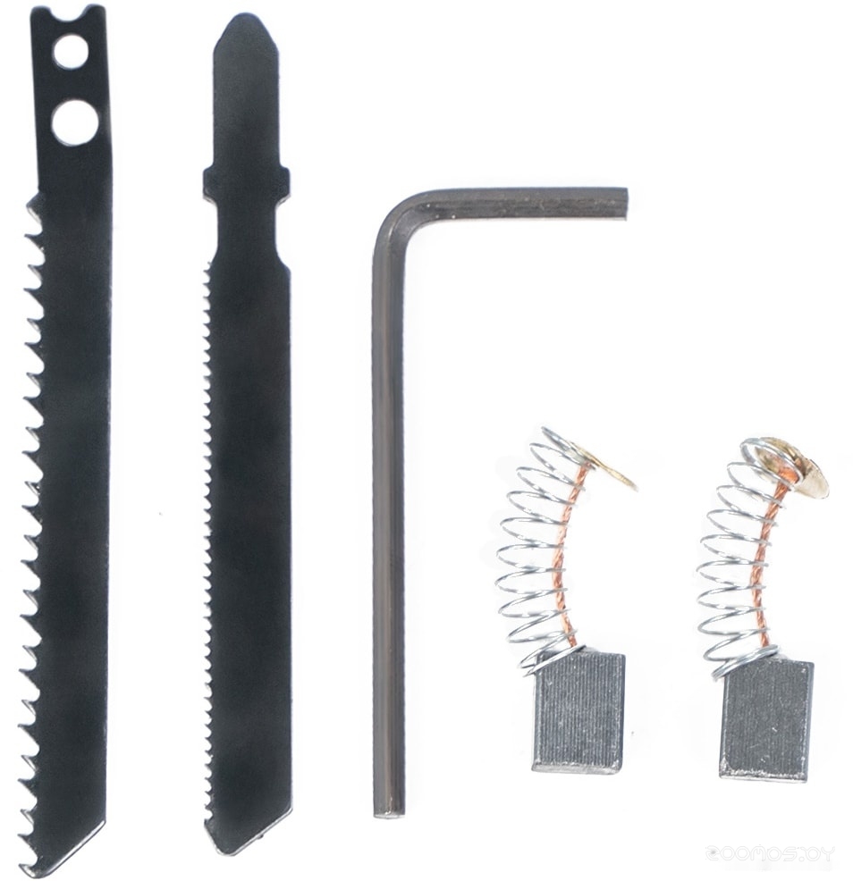 Описание набора: угольные щетки (запасной комплект);- пильное полотно по дереву, по металлу; - шестигранный ключ.